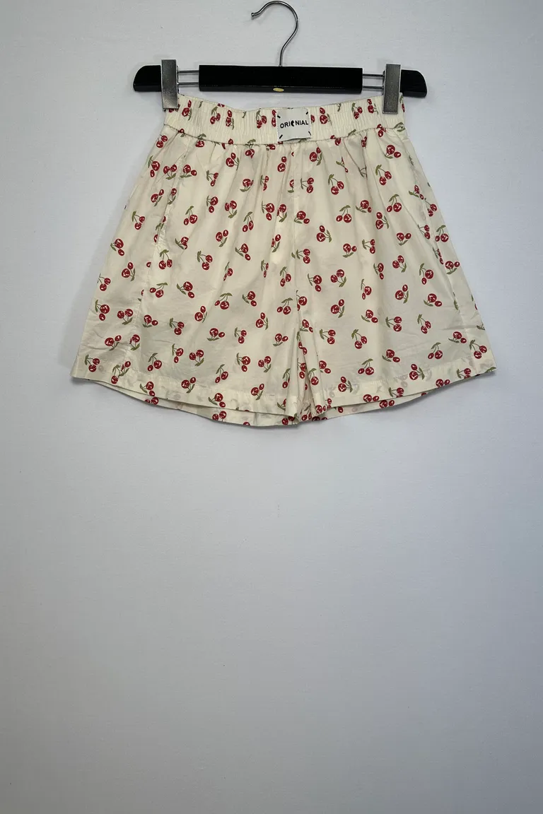 Descrizione Bermuda in fantasia con elastico in vita arricciato