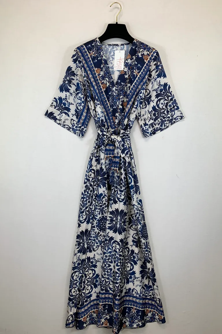 Abito mezza manica in raso, scollo incrociato