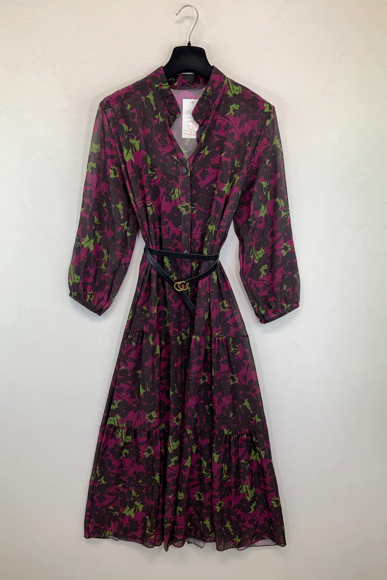 Descrizione Abito a balze in georgette con sottoveste, bottoni sul davanti