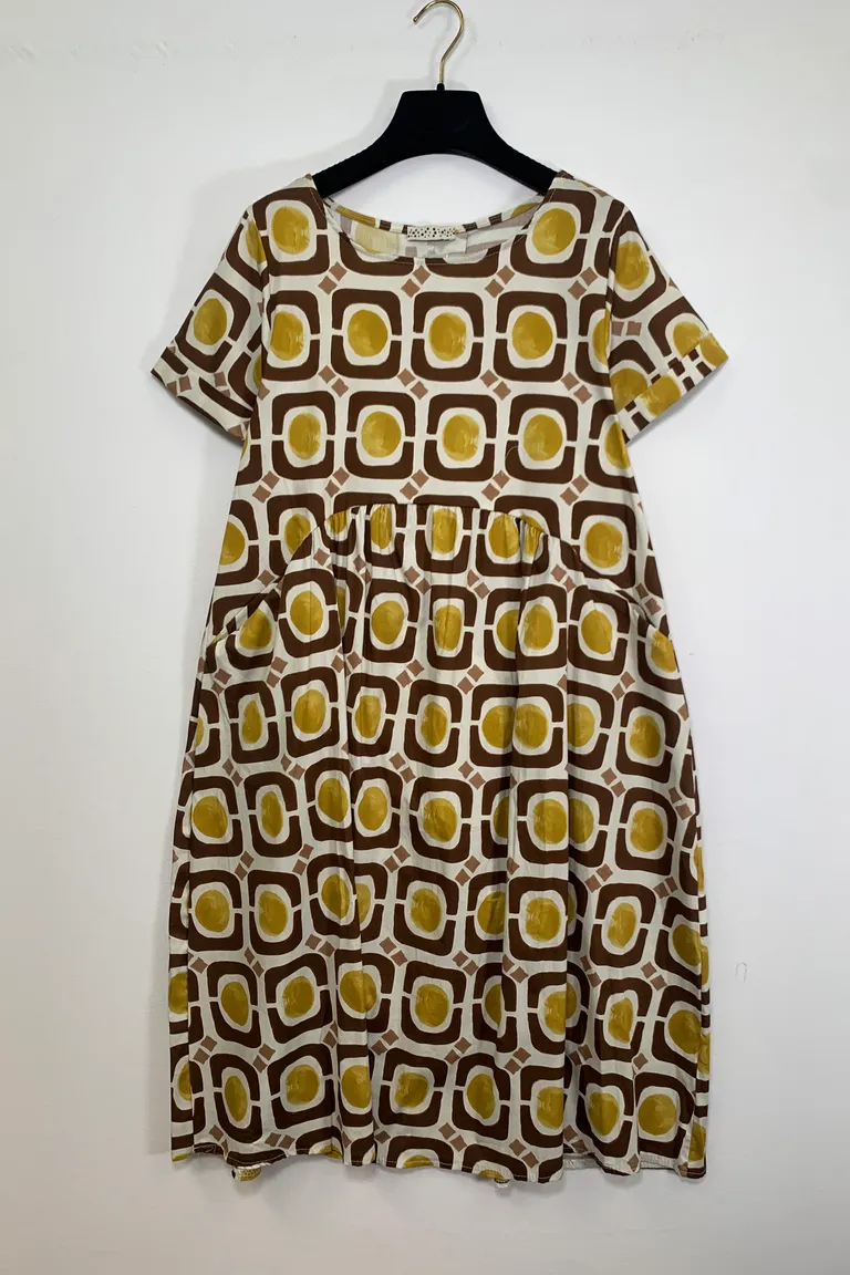 Abito a palloncino, mezza manica, in fantasia