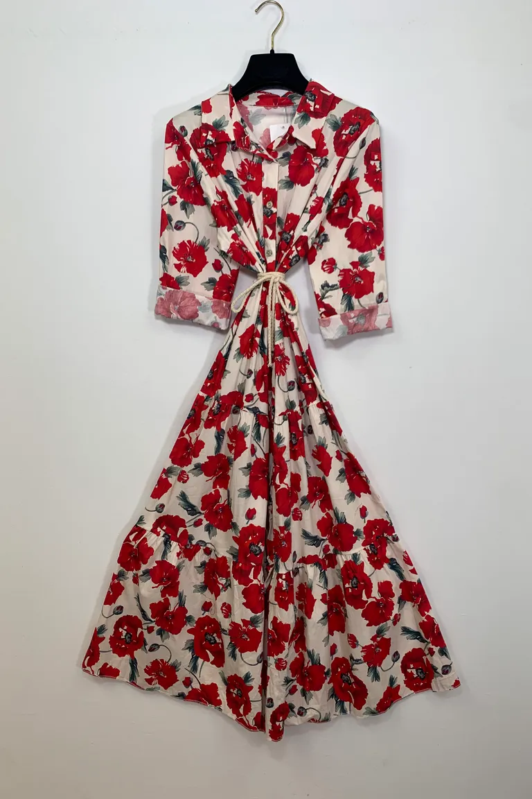 Abito chemisier a balze, fantasia papaveri