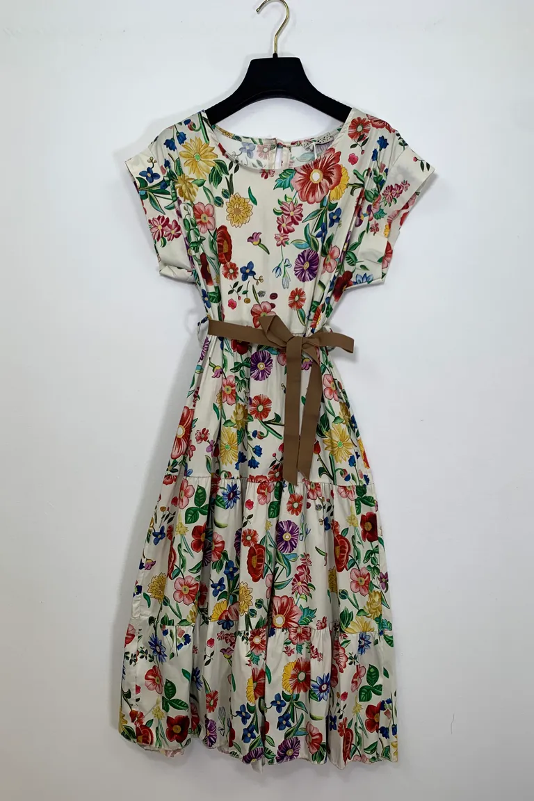Abito mezza manica a balze, in fantasia