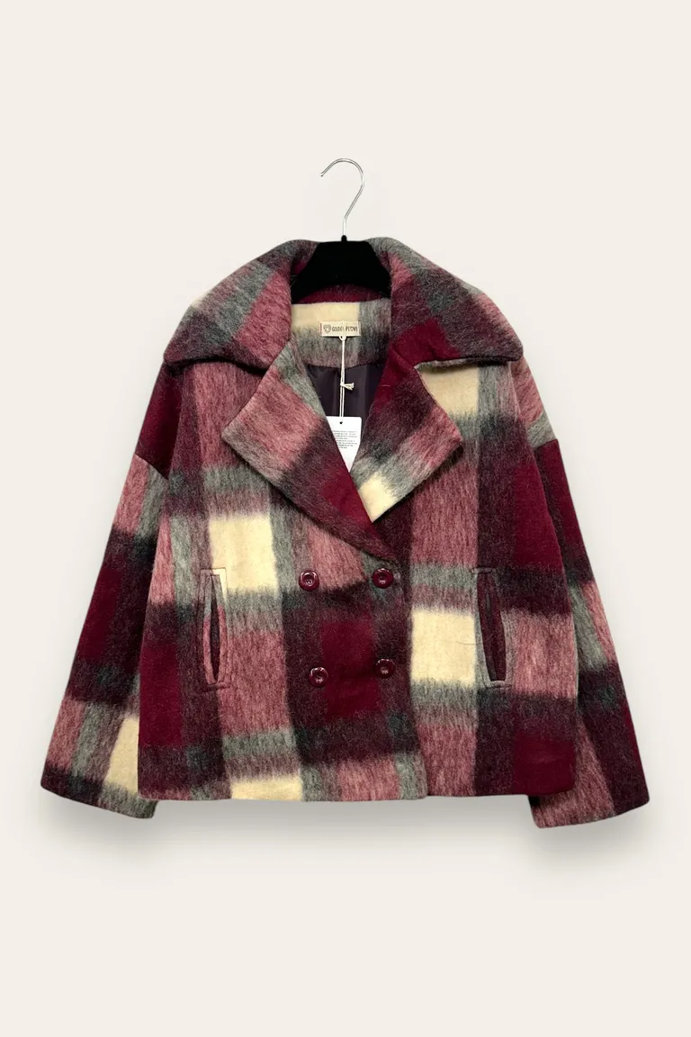 Giacca doppiopetto a quadri in lana cotta