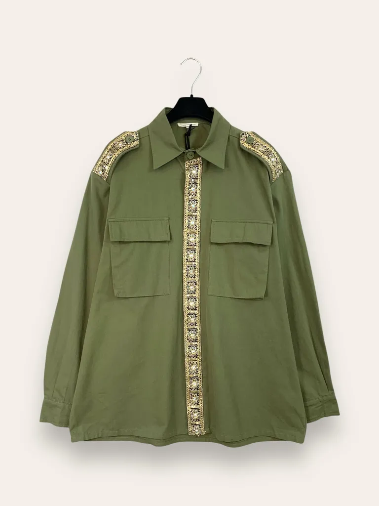 Descrizione Giacca a camicia con tasche frontali e ricami
