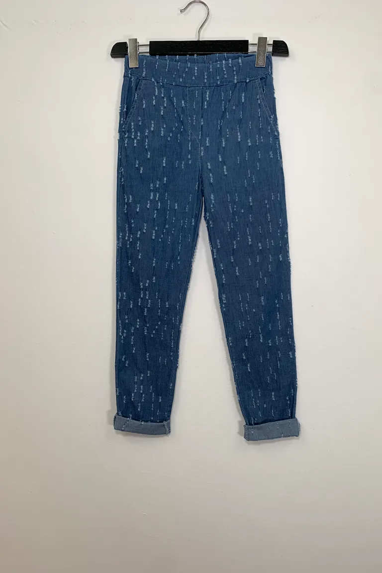 Descrizione Pantalone in chambray, con strappi