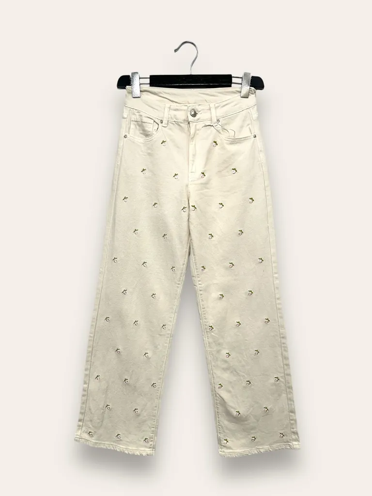 Descrizione Pantalone a palazzo con fiori ricamati in cotone