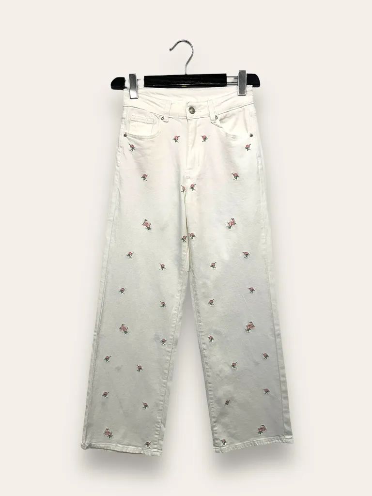 Descrizione Pantalone a palazzo con fiori ricamati in cotone