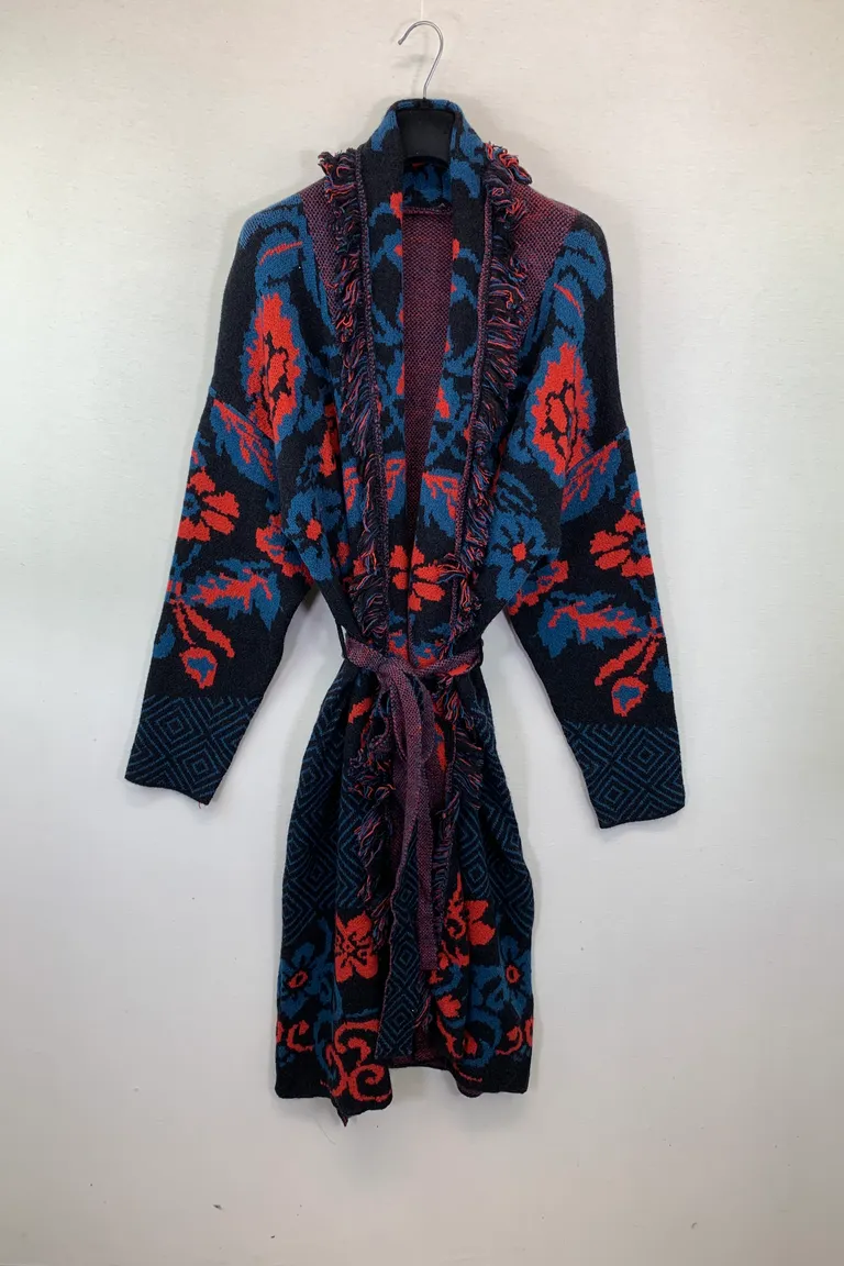 Cardigan lungo sfrangiato in fantasia