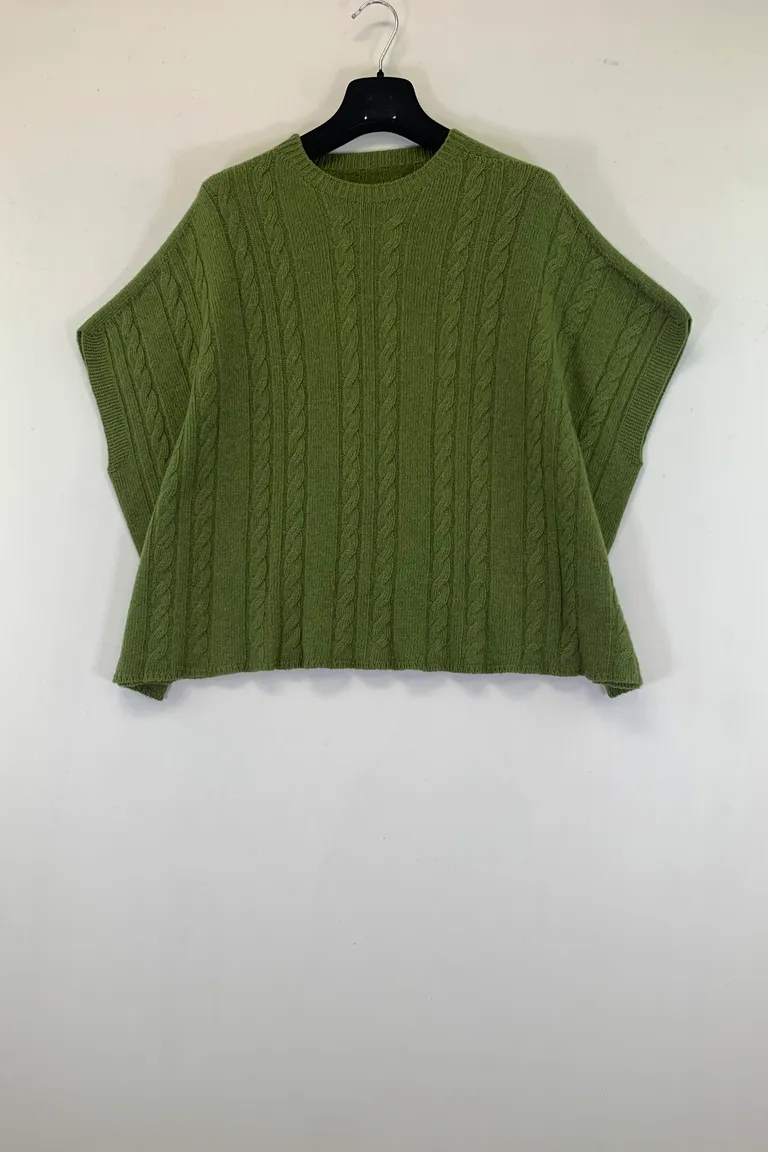 Poncho in cashmere con trecce