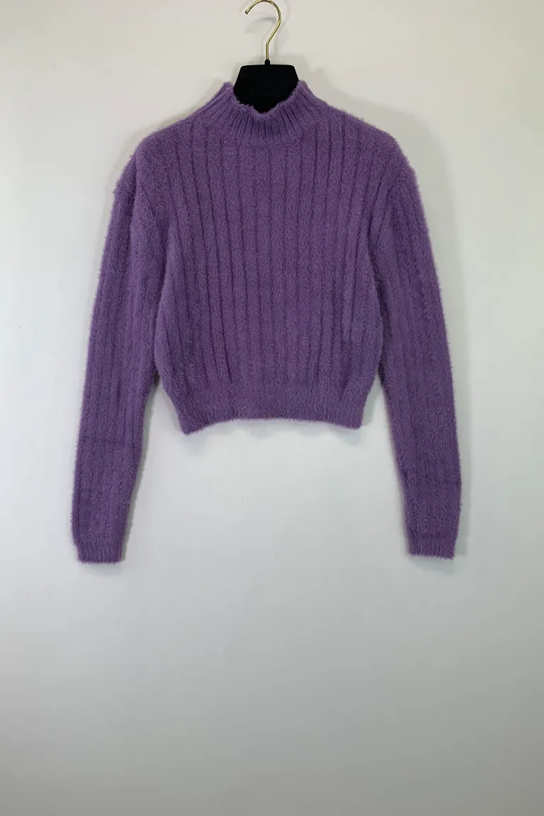 Maglia lupetto corta in maglia pelosa, a coste