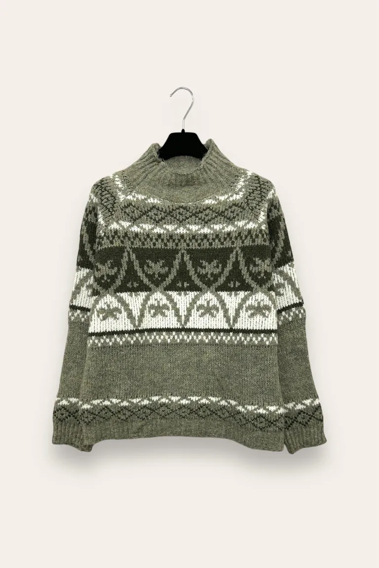 Descrizione Maglia lupetto misto lana, fantasia norvegese