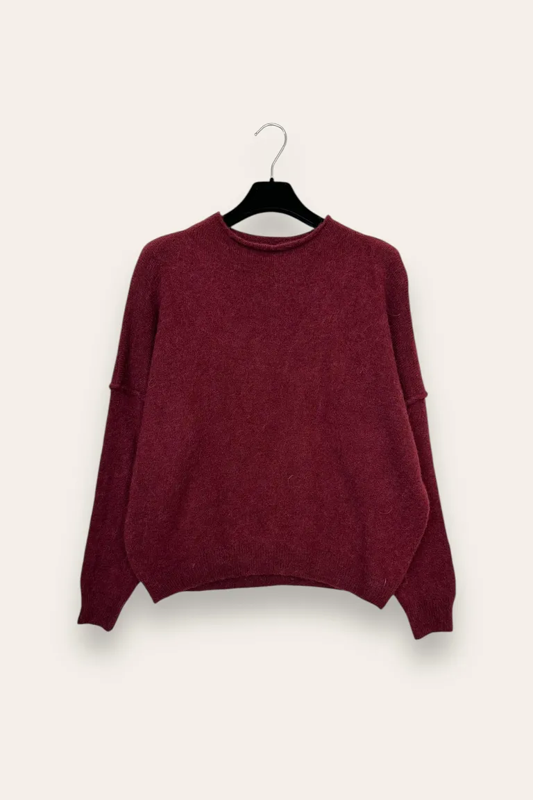 Descrizione Maglia girocollo misto alpaca con cucitura in rilievo