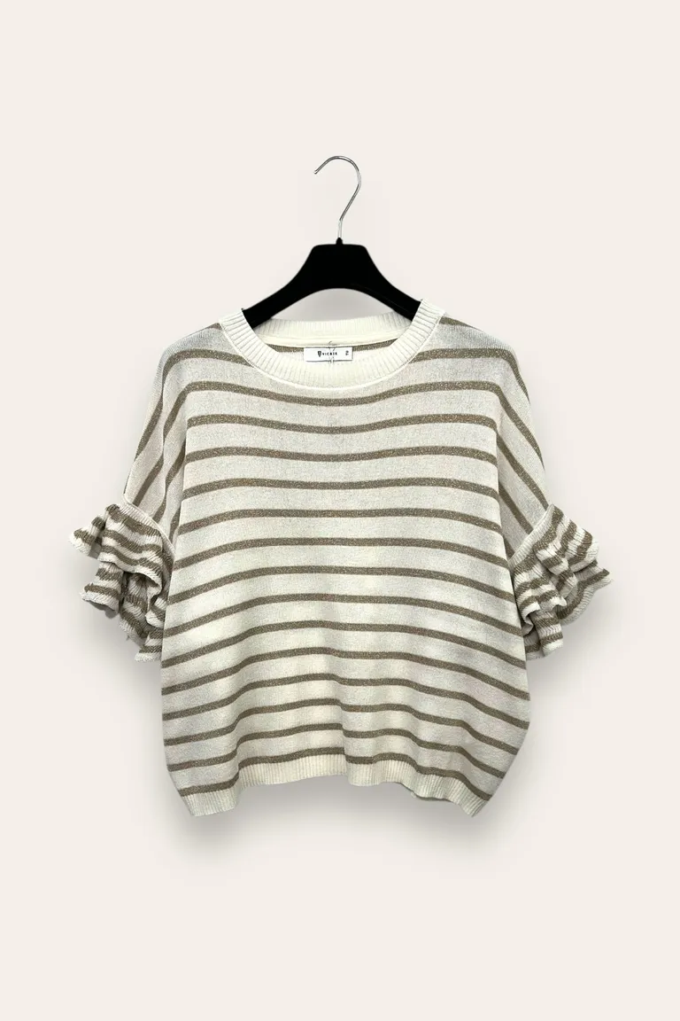 Descrizione Maglia a righe con lurex, mezza manica volant