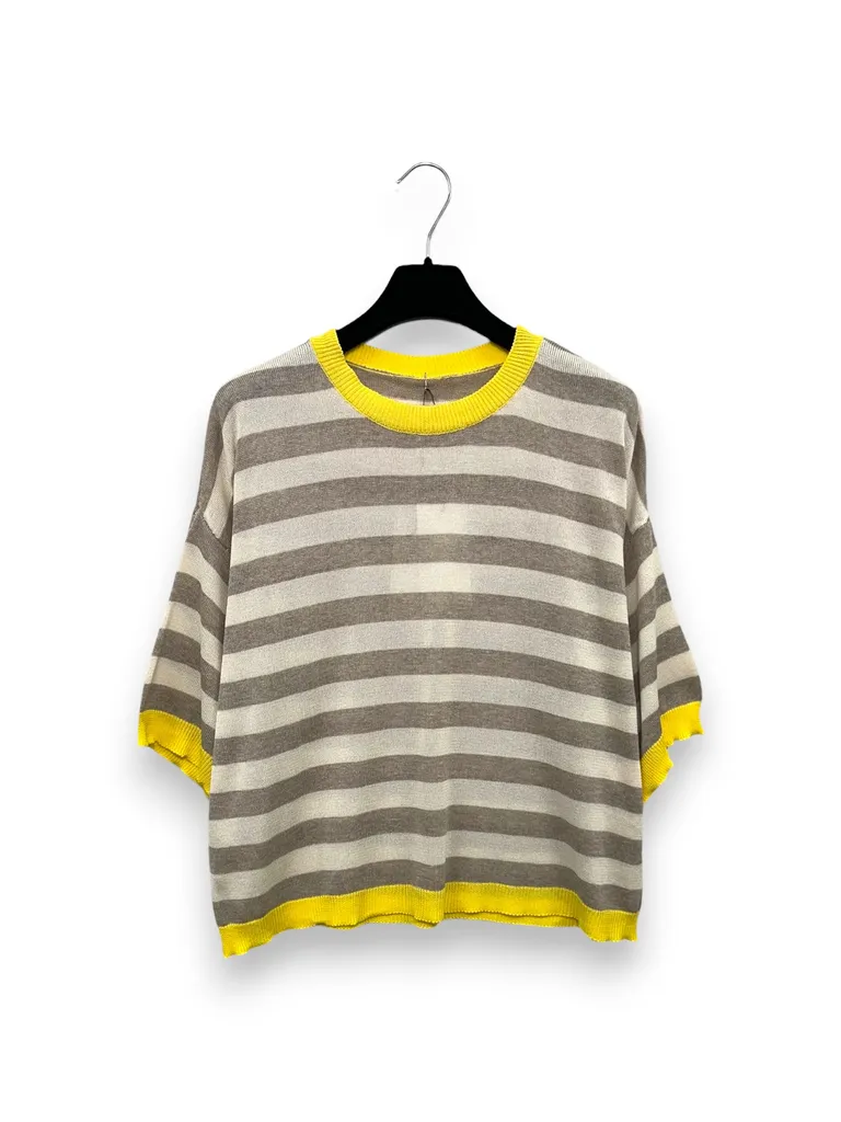 Descrizione Maglia mezza manica in filo, a righe con profili a contrasto