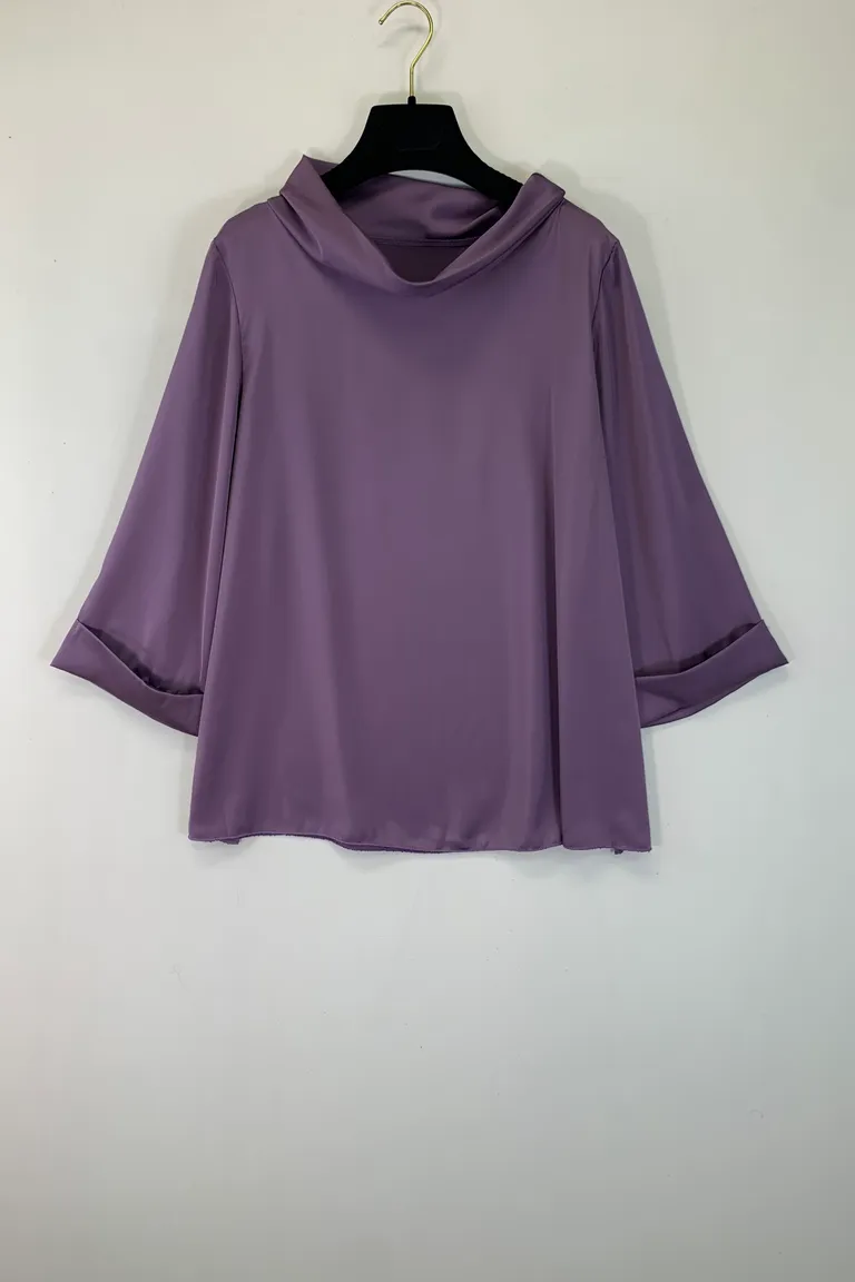 Blusa in raso con scollo a ciambella
