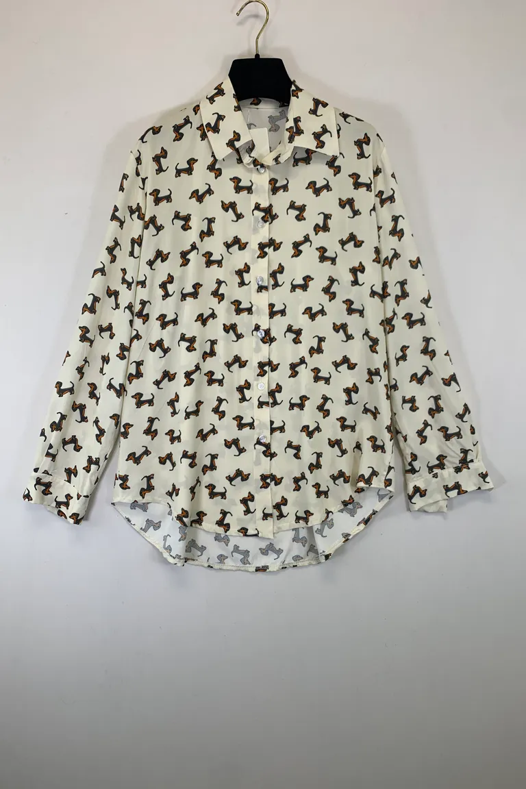 Camicia in viscosa, fantasia bassotto