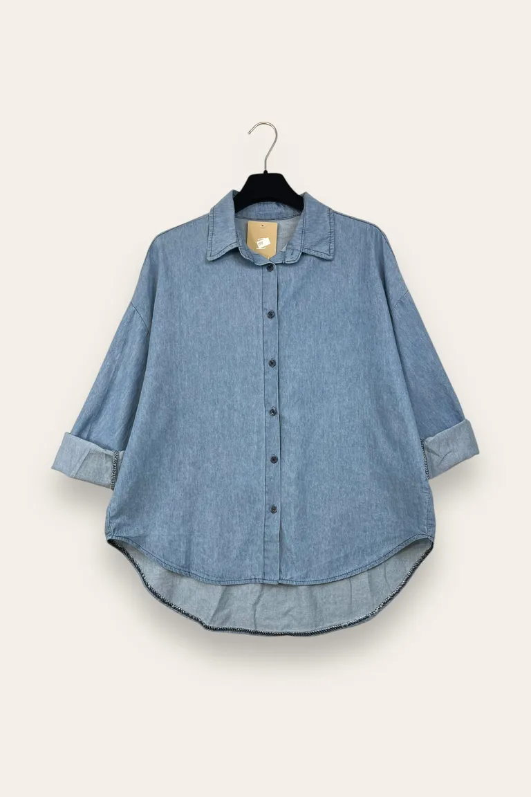 Camicia chambray over più lunga dietro