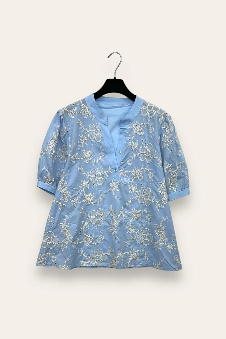 Blusa coreana a V con ricami e piccole paillettes