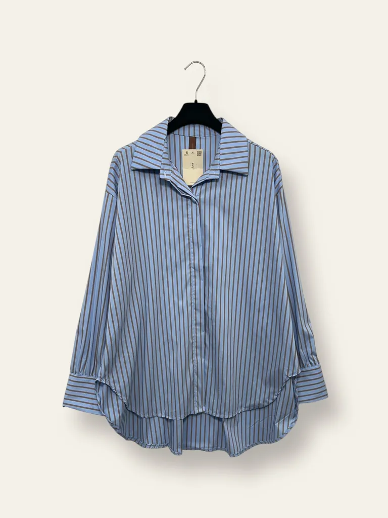 Descrizione Camicia over a righe con ricamo “no vabbè” sulla schiena