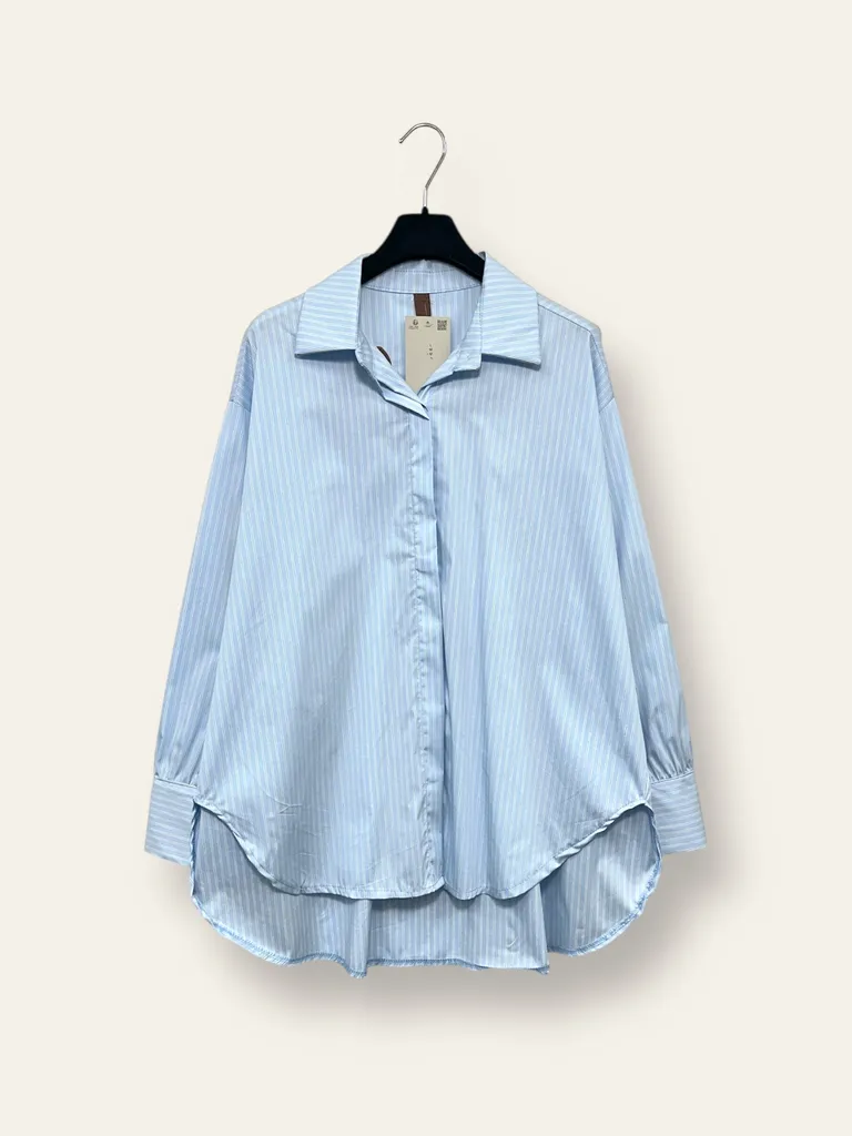 Descrizione Camicia over a righe con ricamo “no vabbè” sulla schiena