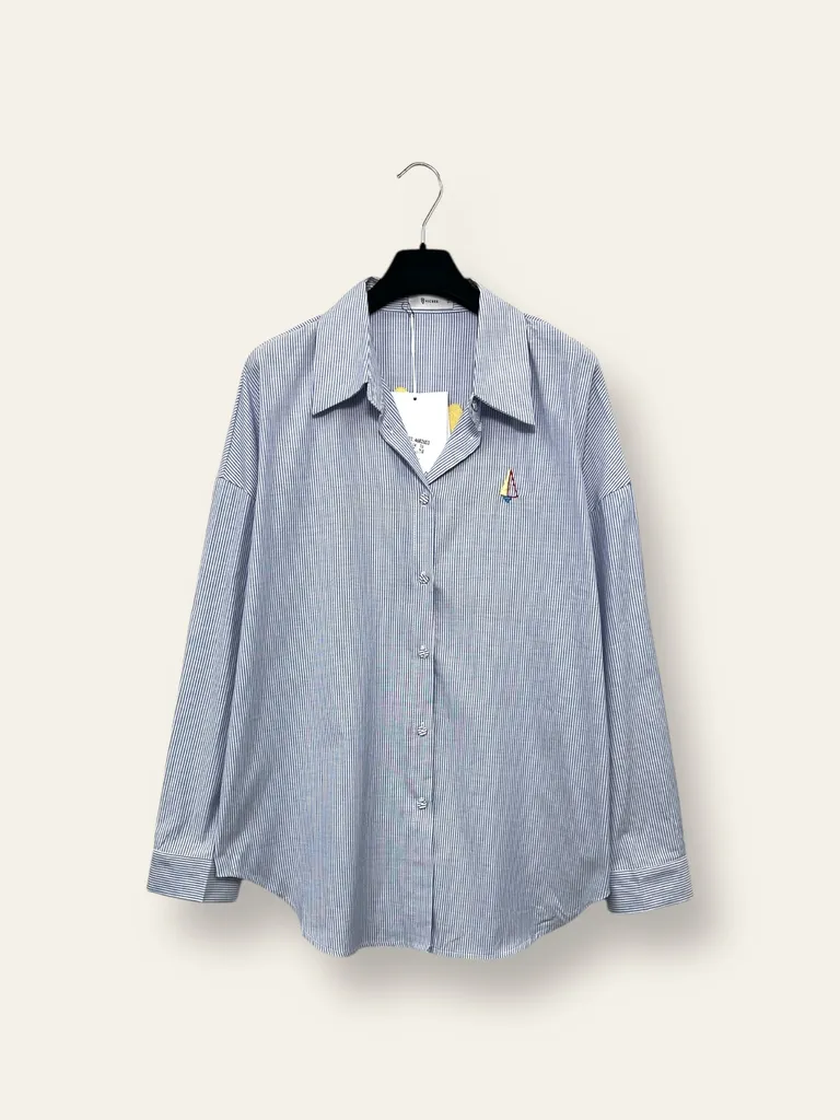 Descrizione Camicia over a righe con ricamo sulla schiena “love in the sun”