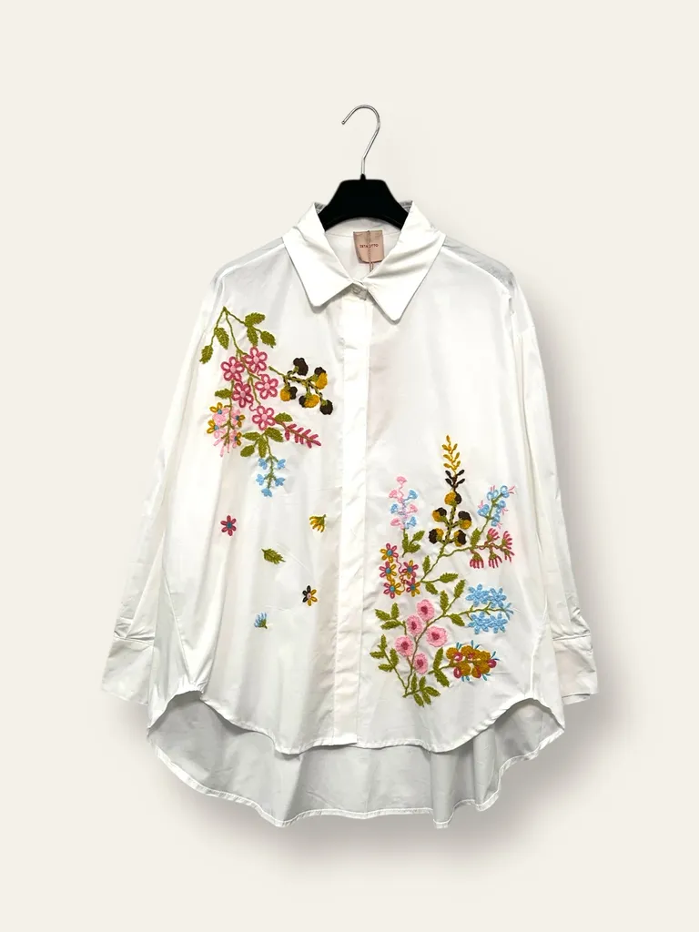 Camicia over con fiori ricamati
