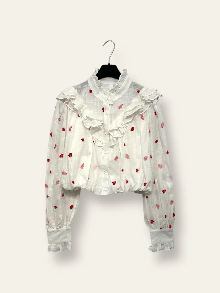 Camicia corto con foglie ricamati e volant