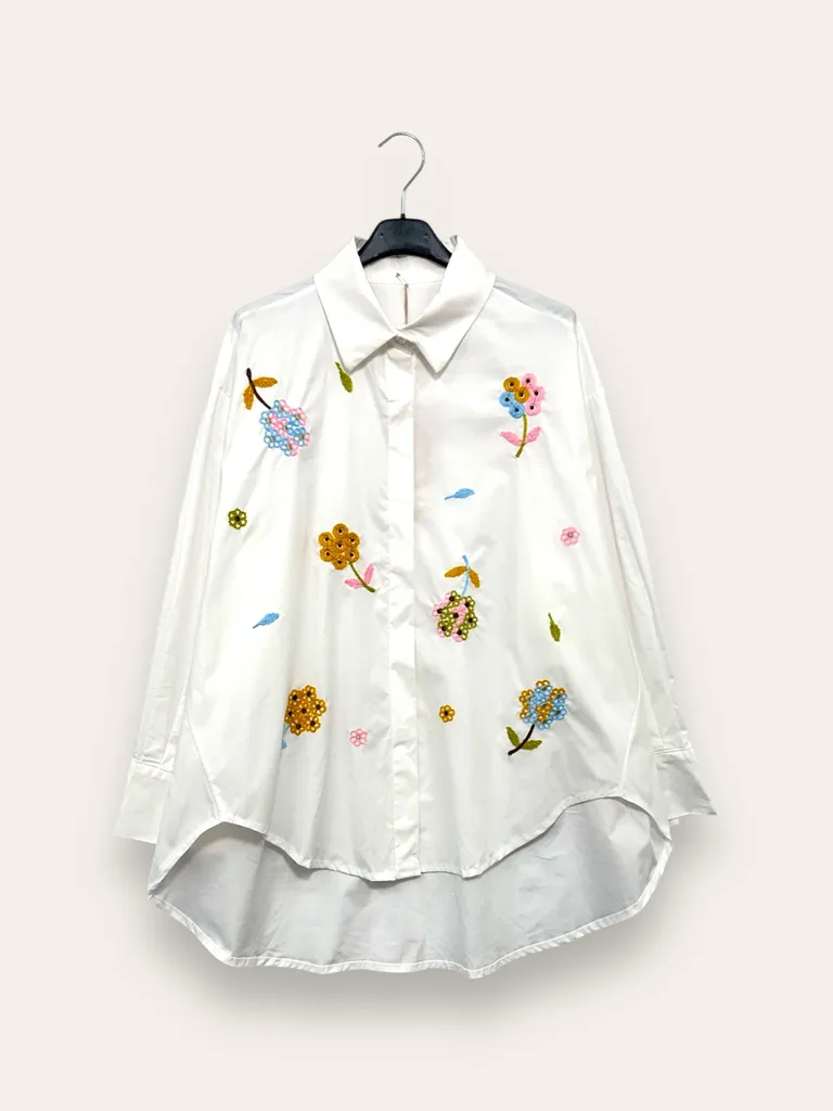 Camicia over con fiori ricamati