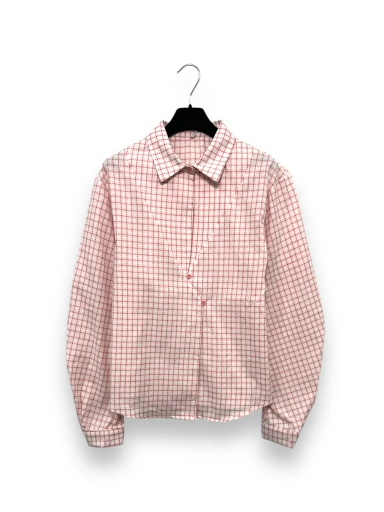 Descrizione Camicia a quadretti, bottoni asimmetrici e maniche arricciate
