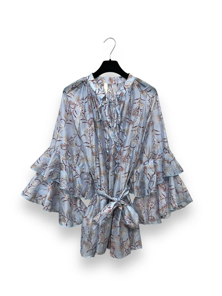 Descrizione Blusa in georgette con volant in manica e fusciacca