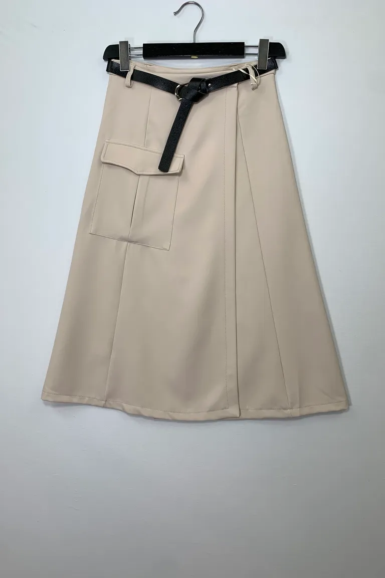 Descrizione Gonna svasata a portafoglio, con tascone