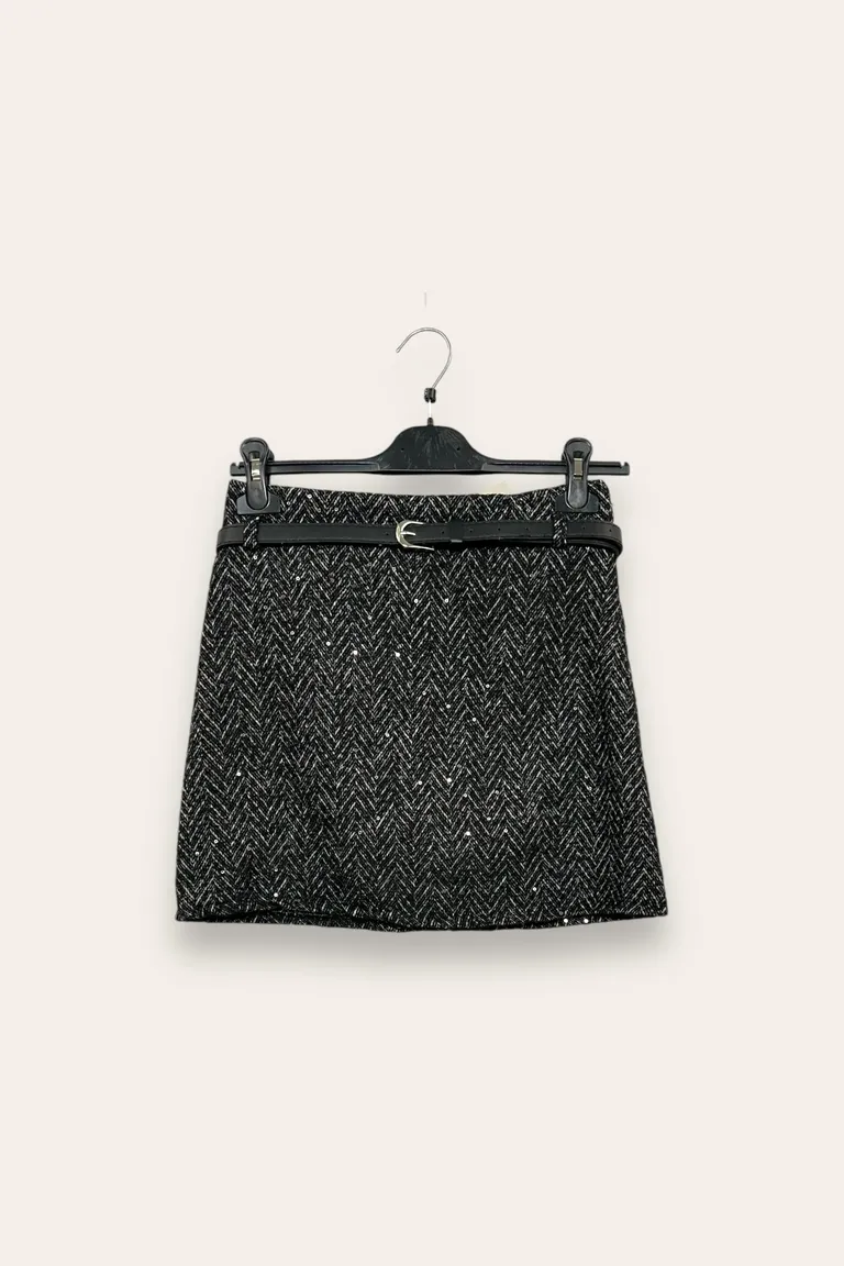Minigonna spigata in tweed, con paillettes