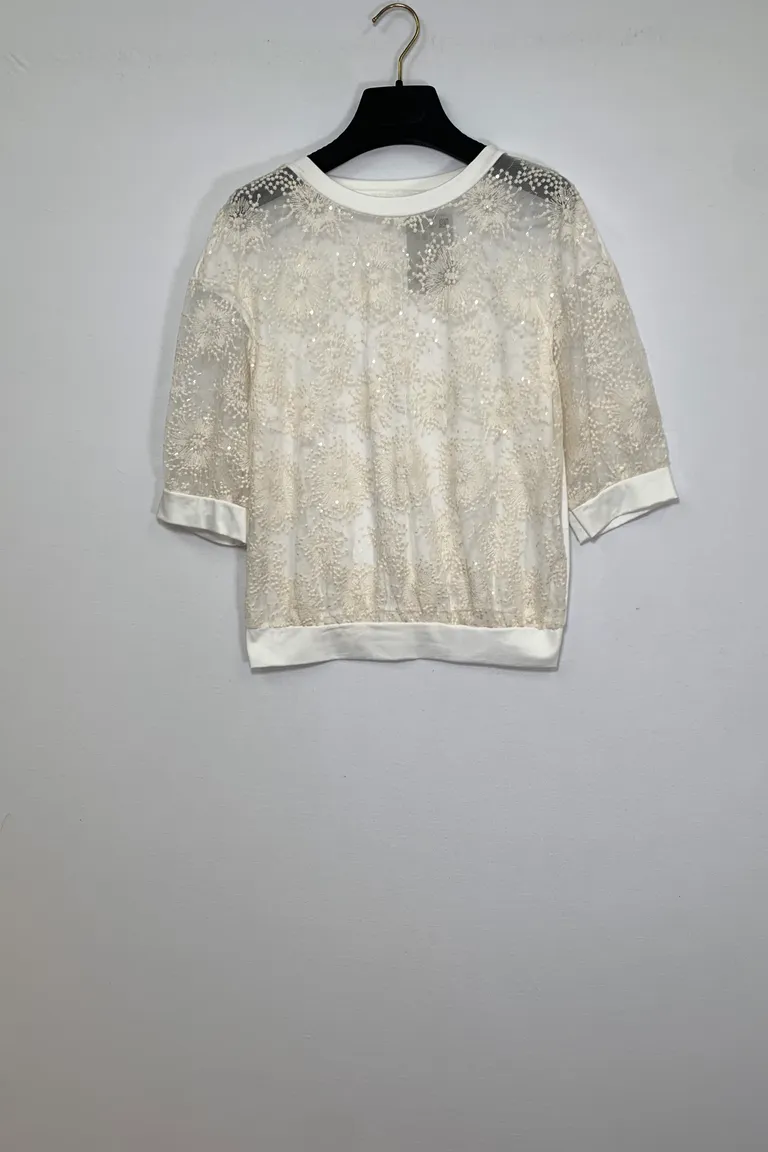 Maglietta in pizzo con manica al gomito
