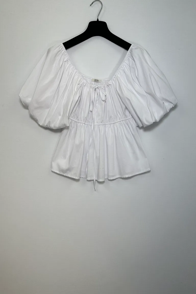 Descrizione Maglietta popeline con scollo a barchetta con laccio sul davanti