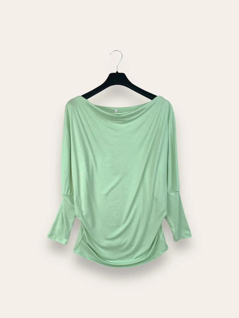 Descrizione Maglietta scollo morbido in viscosa, con drappeggio ai fianchi