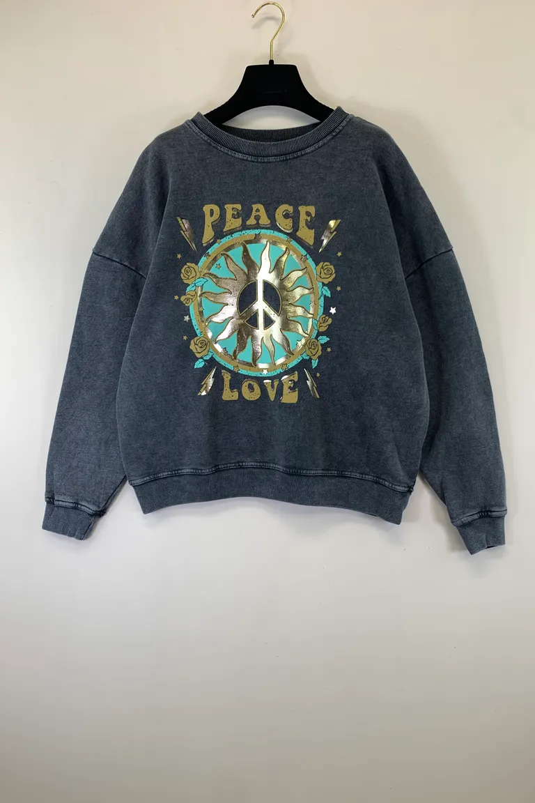 Felpa stone wash con stampa “Peace Love”