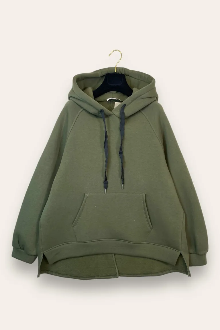 Descrizione Felpa felpata over con tasca davanti e 2 bottoni lungo la schiena