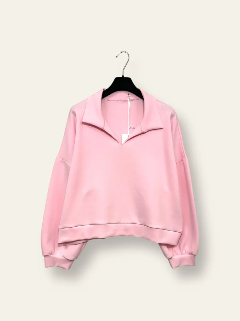 Felpa in scuba, scollo a V con colletto