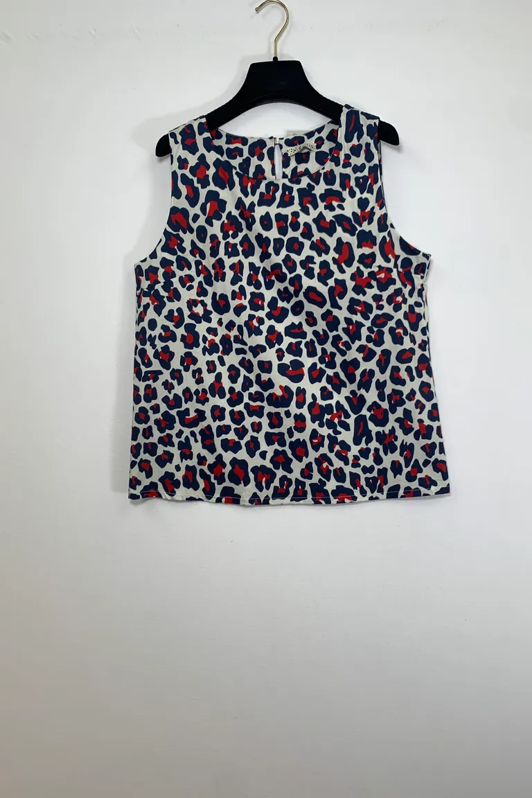 Descrizione Canotta fantasia animalier, con bottone dietro il collo
