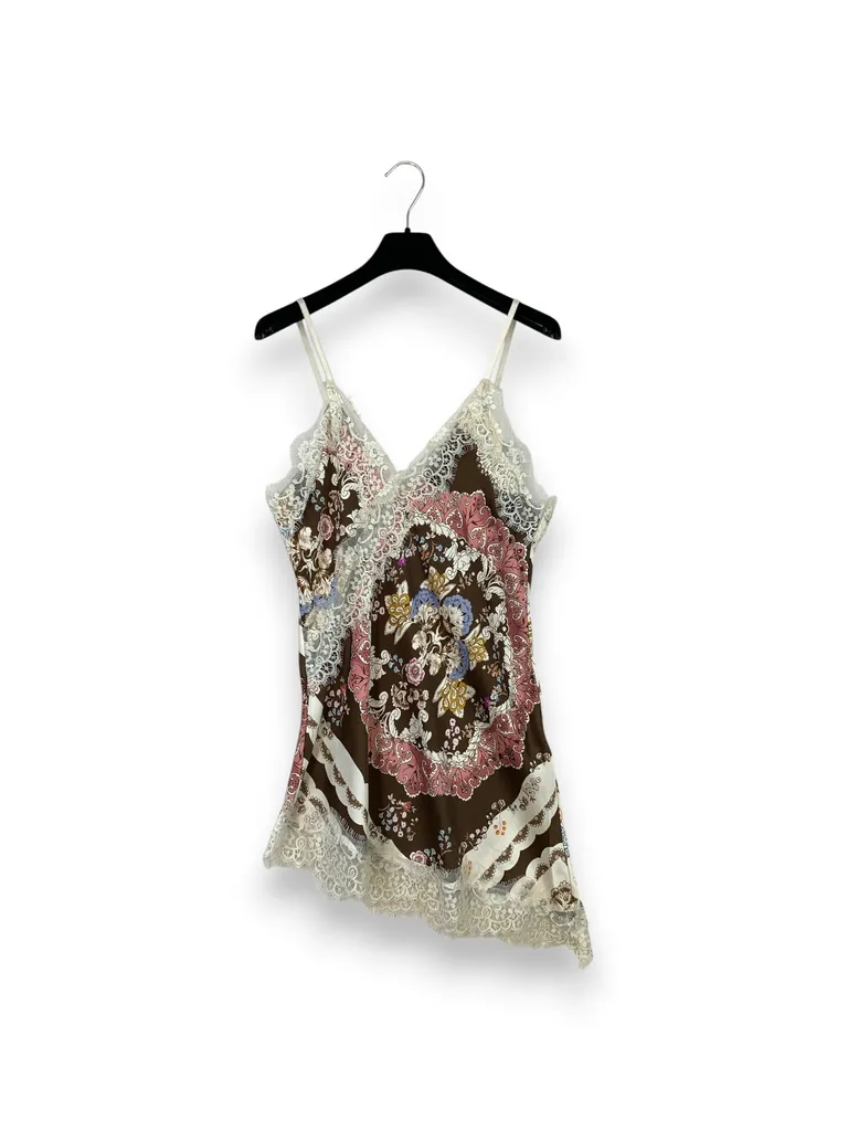 Descrizione Canotta asimmetrica in viscosa a pois con inserti in pizzo