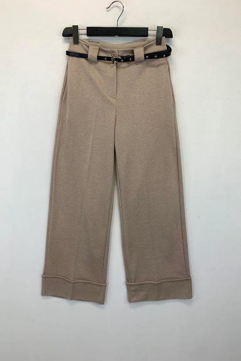 Descrizione Pantalone a palazzo in velluto liscio, con risvolto al fondo