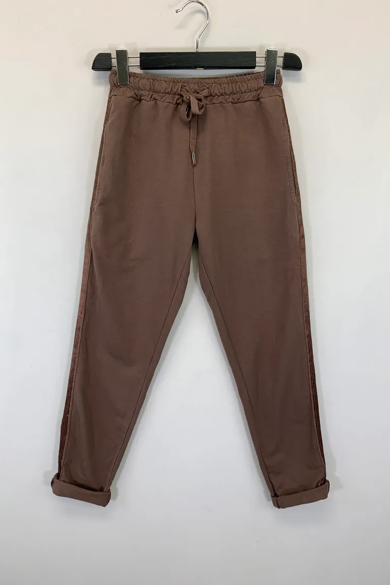Descrizione Pantalone in felpa, con banda laterale in raso