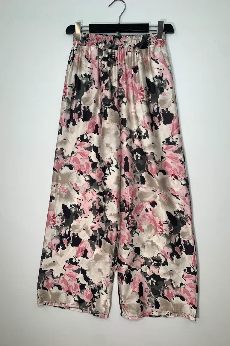 Descrizione Pantalone a palazzo in raso in fantasia
