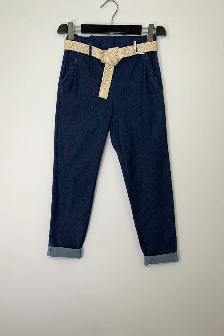 Descrizione Pantalone morbido chambray, ruches alle tasche