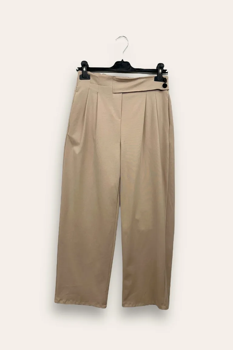 Descrizione Pantaloni punto milano, risvolto in vita e bottoni decorativi