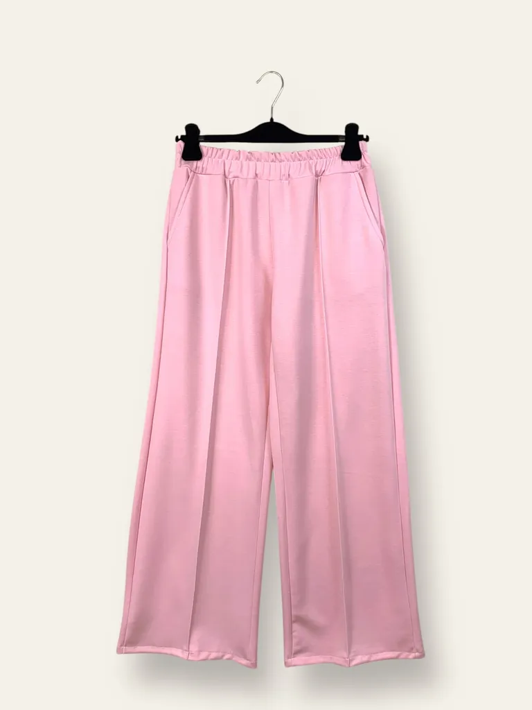 Descrizione Pantalone in scuba a palazzo con elastico in vita e una riga davanti