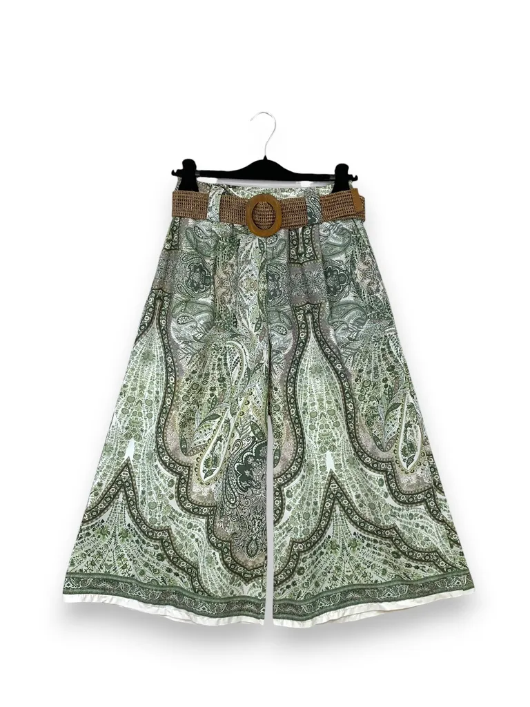Descrizione Pantalone gaucho in fantasia con elastico in vita