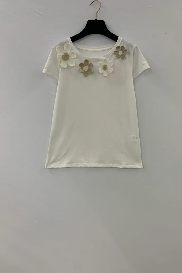 T-shirt con ricamo fiori in girocollo