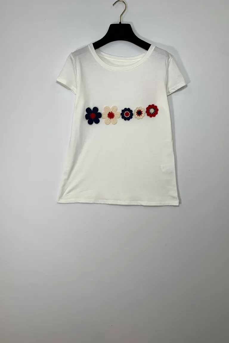 T-shirt con fiori all’ uncinetto