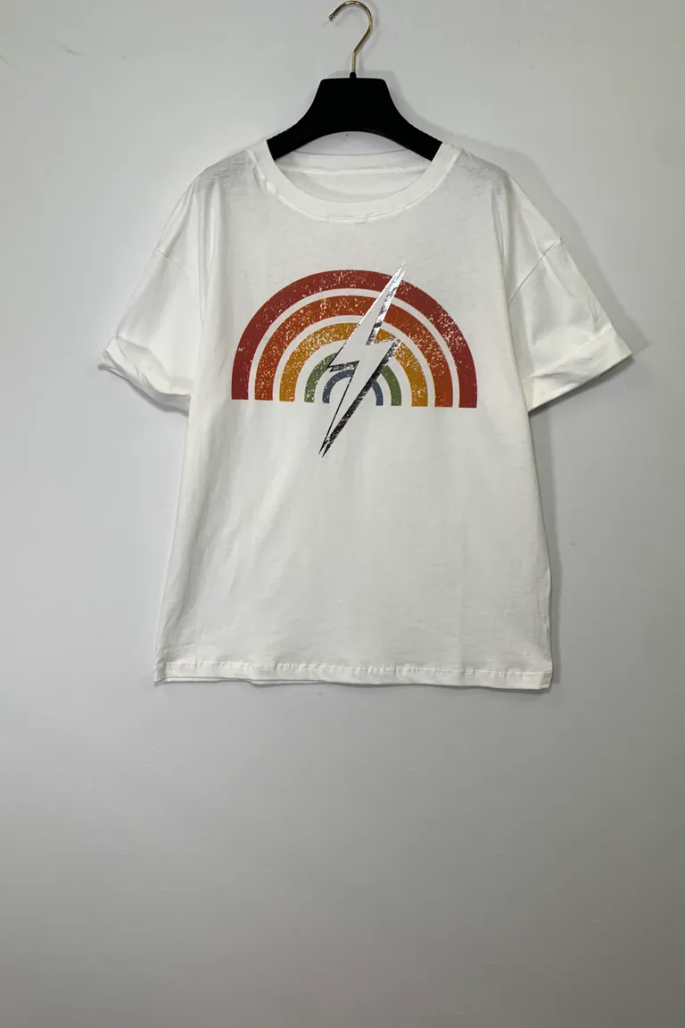 T-shirt con arcobaleno e fulmine
